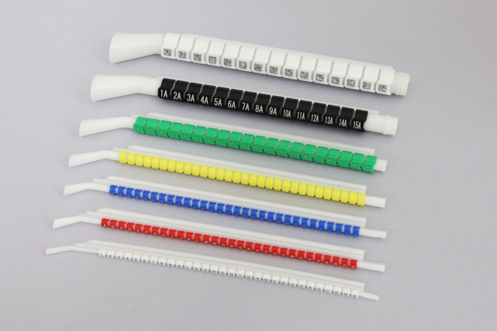 これらはすべて、結線された電線にも取り付けできる配線標示材です。