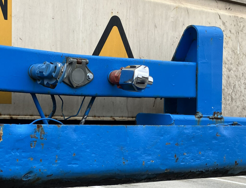 構内に停まっているシャーシ(コンテナ搭載台車)は、鍵が不足していたり、施錠ポイントが限られているため、悪意のある第三者に狙われやすいのが現実です。特にエマージェンシーライン(サプライライン)であるエアブレーキ接続部は「ブレーキを解除するための重要部分」であり、ここにトラクターヘッドを接続されてしまうとブレーキが解除され、シャーシを動かすことができてしまいます。